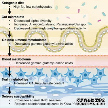 这些研究人员测量了肠道、血液和海马体---一个在扩散癫痫中起着重要作用的大脑区域---中的数百种生化物质的水平。他们发现,这些在肠道菌群中的水平可通过生酮饮食加以提高的细菌会以影响海马体中的神经递质的方式改变肠道和血液中的生化物质水平。